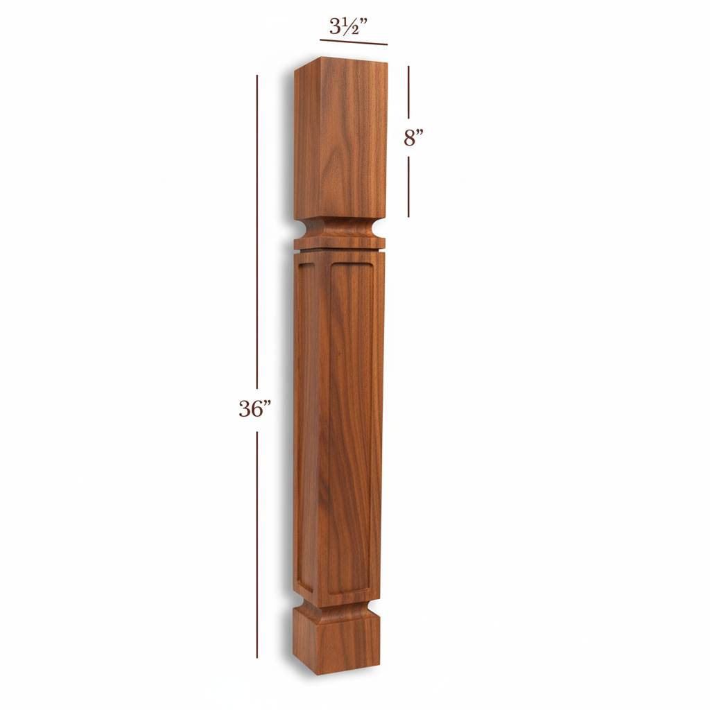 Mission Series -- 3.5" x 3.5" x 36" Recessed Full Window Kitchen Island Leg