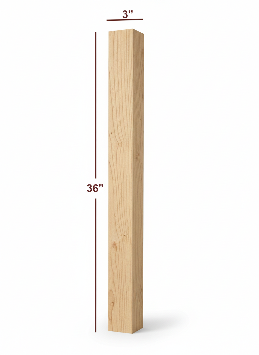 Skyline Series -- 3" x 3" x 36" Straight Square Kitchen Island Leg
