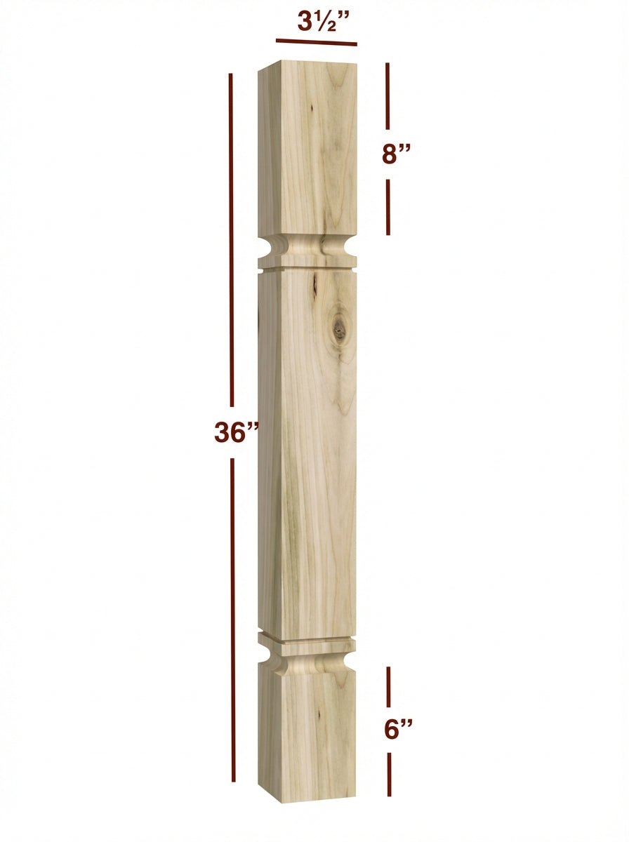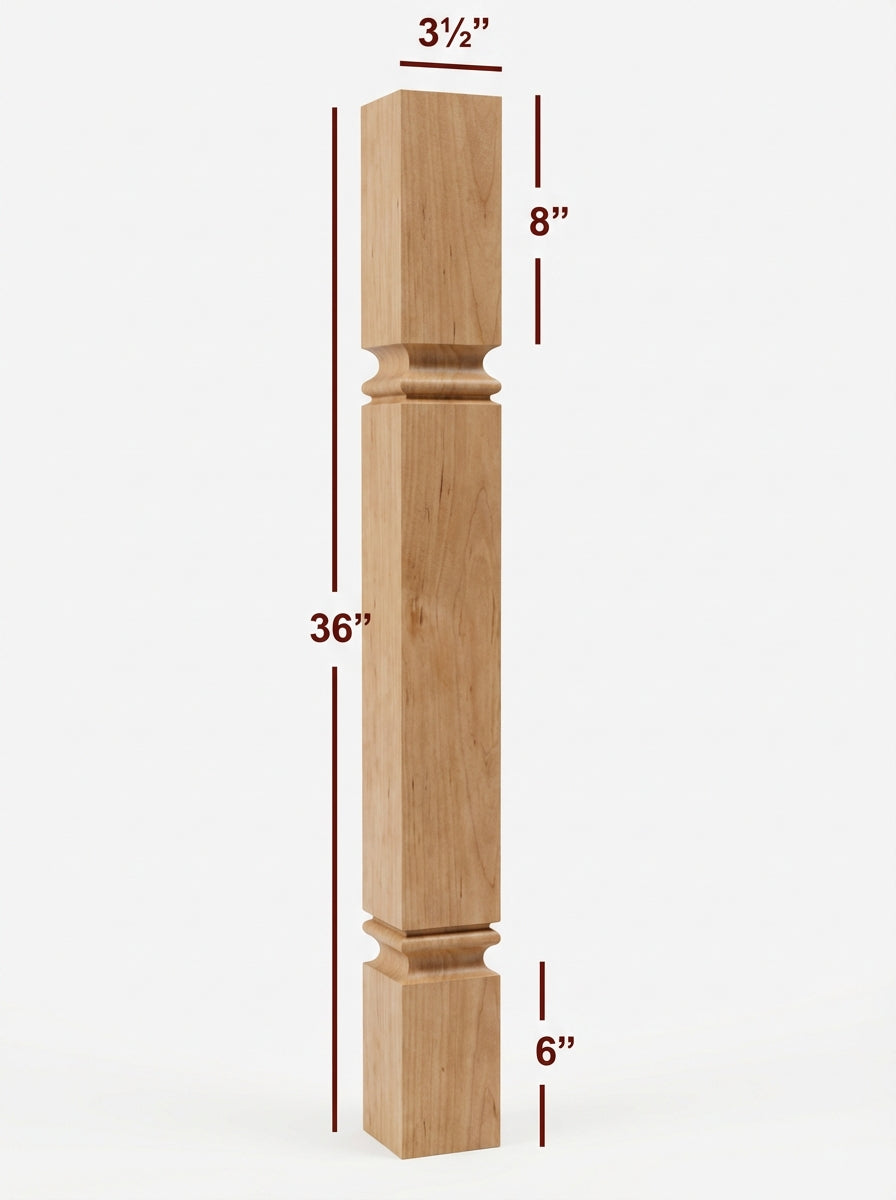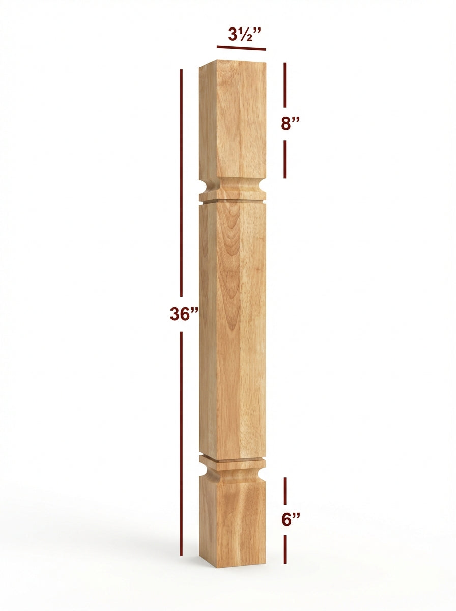 Mission Series -- 3.5" x 3.5" x 36" Square Plain Kitchen Island Post