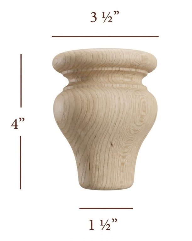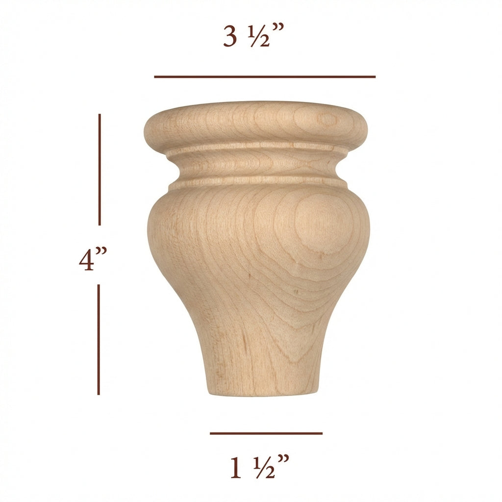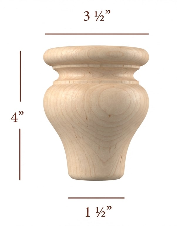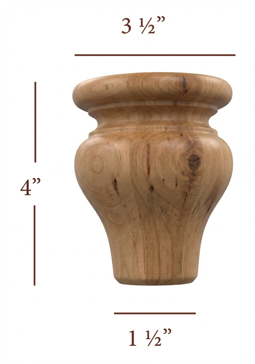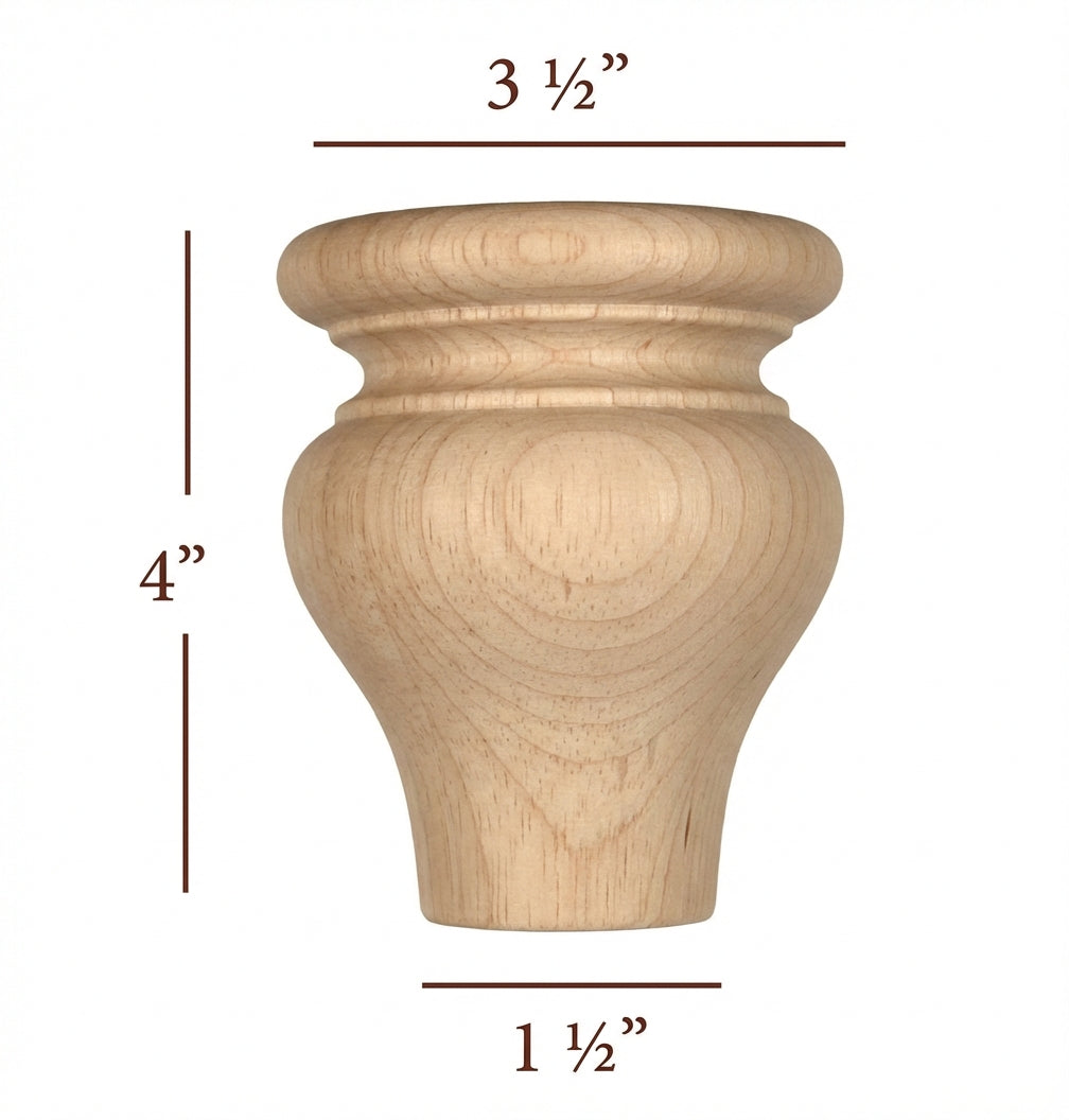 4" tall x 3-1/2" Diameter Round Turned Bun Foot